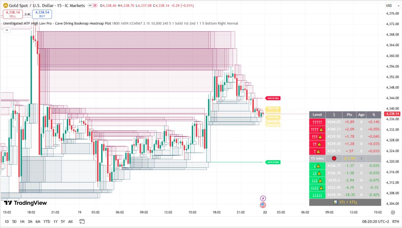 If Someone interest to make MT4 indicator's...Tsar wrote: Mon Jan 05, 2026 5:54 am Unmitigated MTF High Low Pro - Cave Diving Bookmap Heatmap Plot