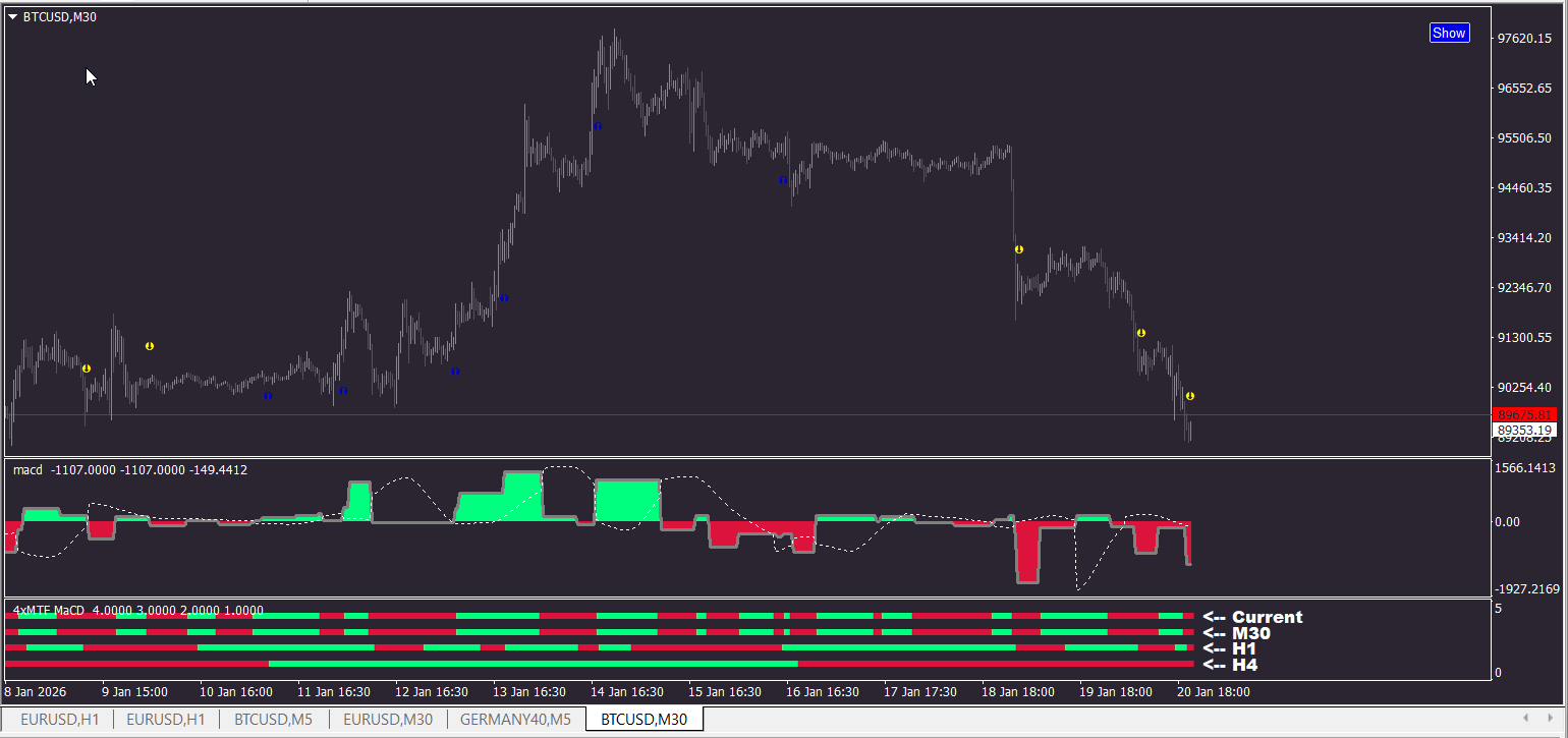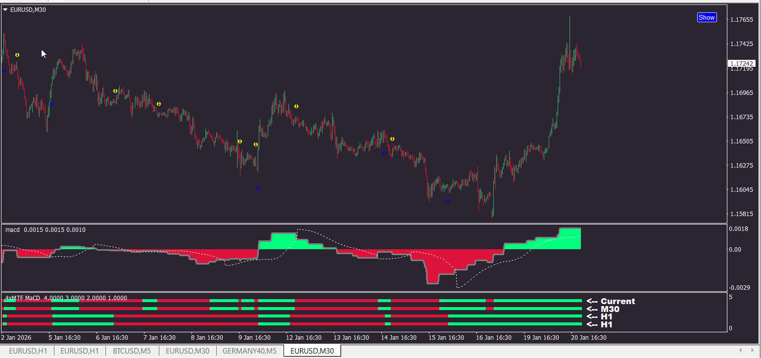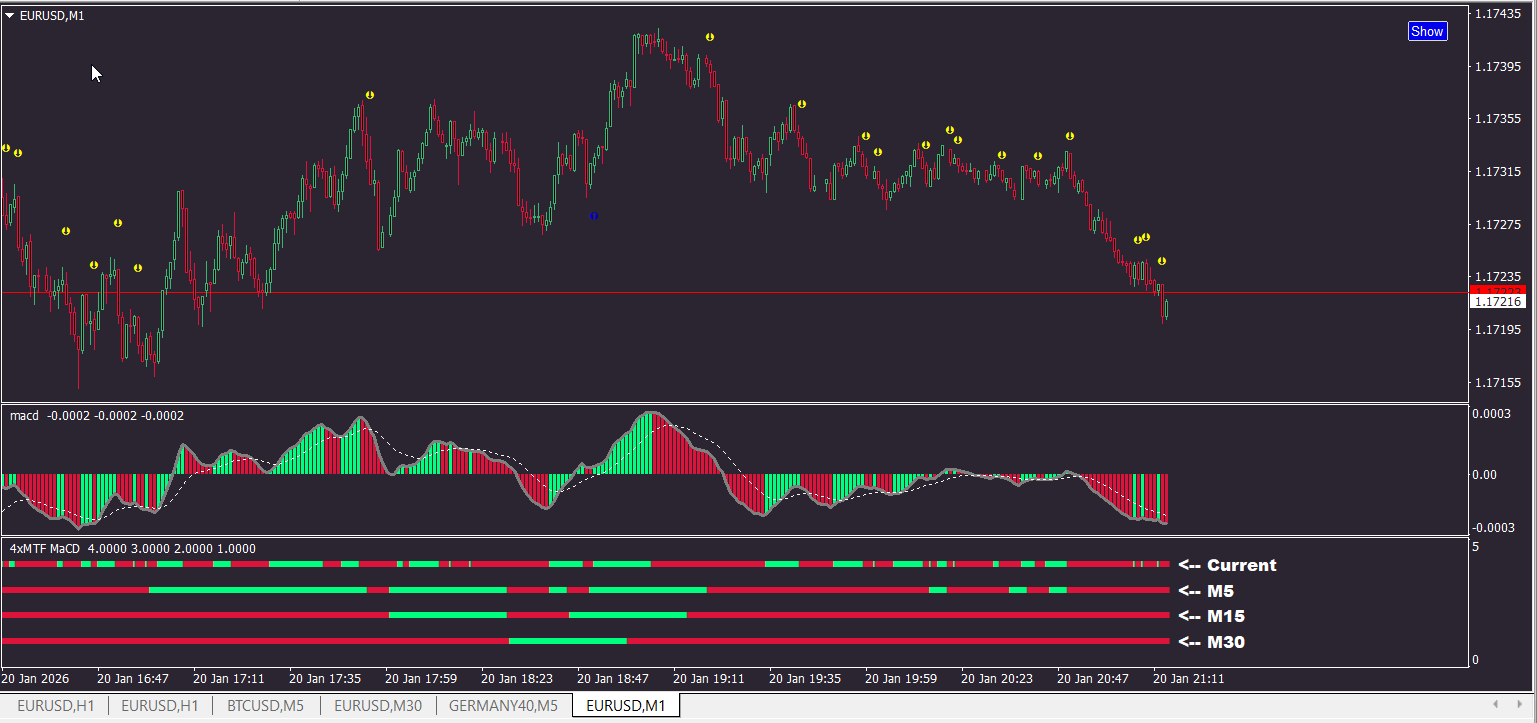 Fionwins wrote: Tue Jan 20, 2026 5:43 pm Hi Kvak, I was wondering if it's possible to have a 4 time-frame indicator of MACD? If something like this already exists, I'd be grateful for a link. If not, is it feasible to code one in MT4? Thank you.