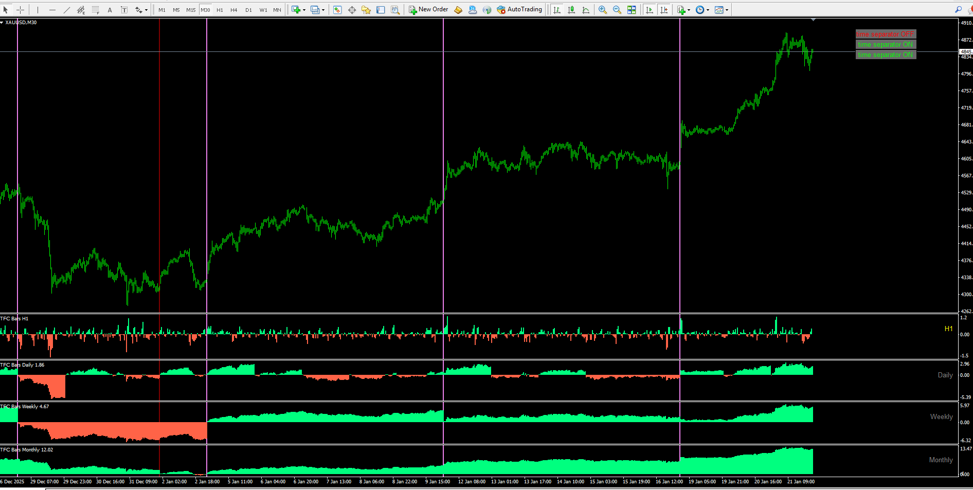 But I'm sharing the Timeframe Continuity Bars MT4 version because it seems to be ok.