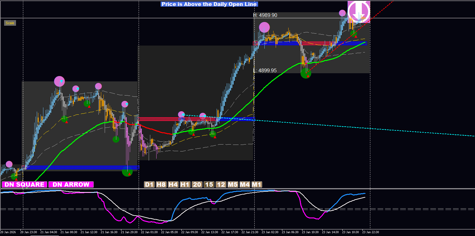 In other words, is the second big dot pink + blue in bullish trend as in my pic?