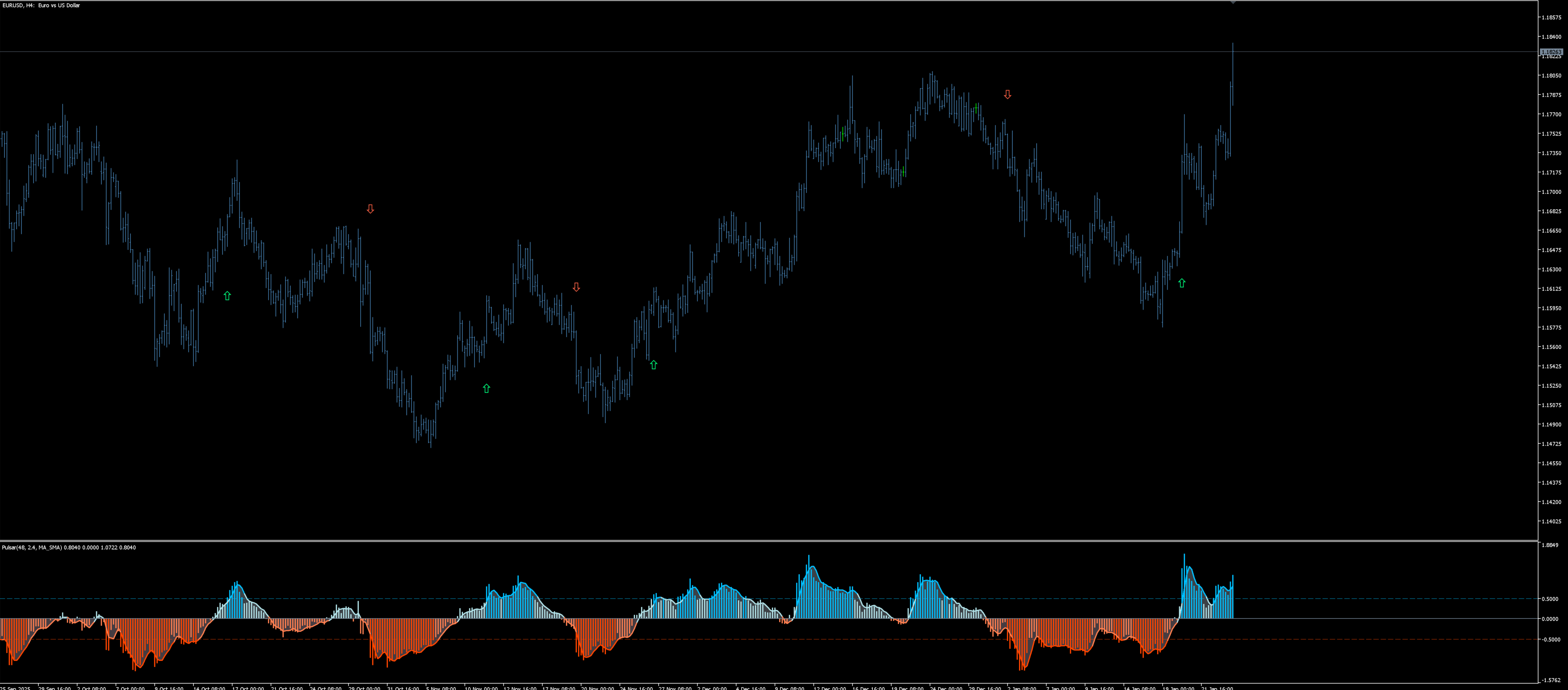 Pulsar addresses this by weighting price deviation from the mean by volume intensity, then normalizing the result to produce a bounded oscillator that identifies market regime: trending vs mean-reverting conditions.