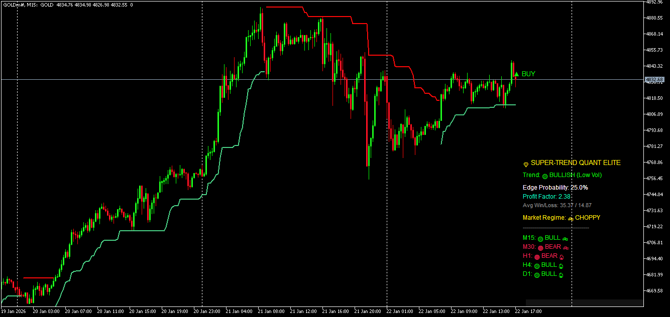 Recently, I have been testing ProfitMax as a trend filter and comparing it with Supertrend. What I like most about ProfitMax is its stability: it does not flip or break due to false breakouts, even when price pierces it with several candles, and it maintains a continuous trend structure. This makes it suitable even for the M5 timeframe, without the need for a separate MTF version. Compared to Supertrend, this results in a much smoother and more consistent behavior.