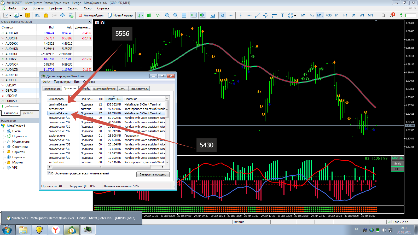 I have two releases MT5 5556 and 5430. CPU usage is not higher than 20%