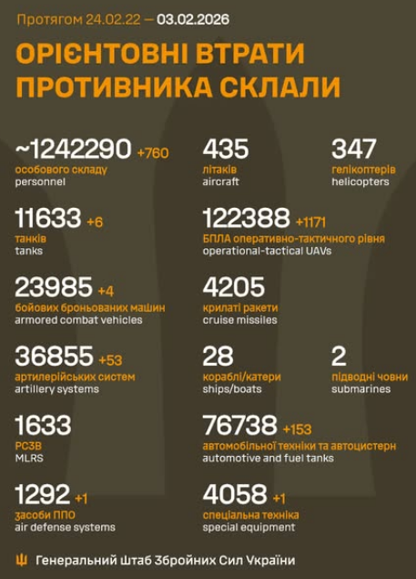 from 24.02.22 to 03.02.26 amounted to /