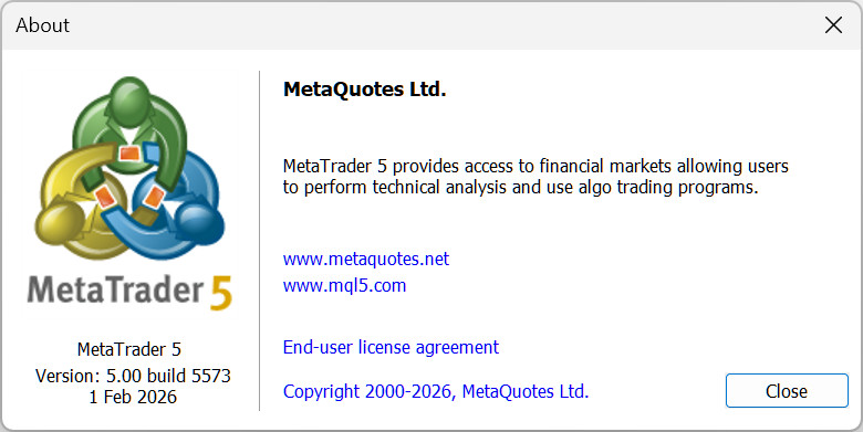 MetaTrader 5 BETA build 5540 - Launch 23 Jan 2026