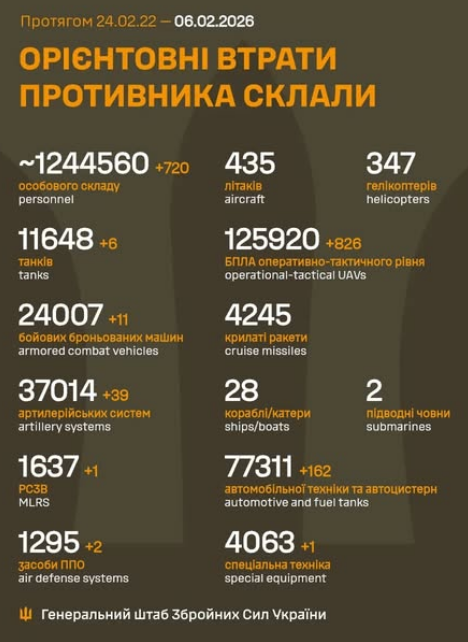 from 24.02.22 to 06.02.26 were approximately: