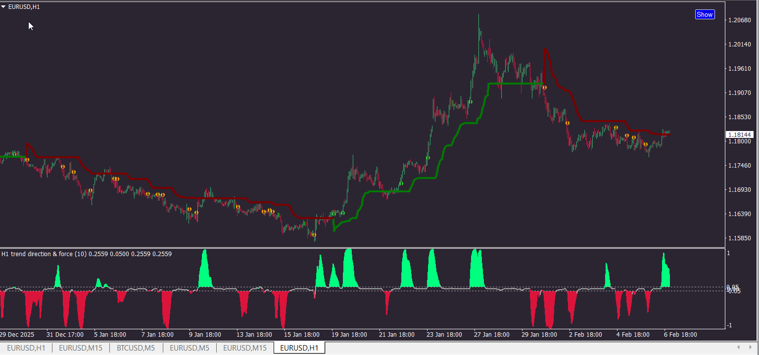 In this indicator, I’m not interested in reversal points — I think TDI on H4 handles that quite well. What I’m focused on are entries in the direction of trend continuation.
