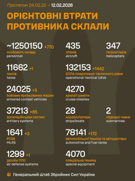 from 24.02.22 to 09.02.26 were approximately: