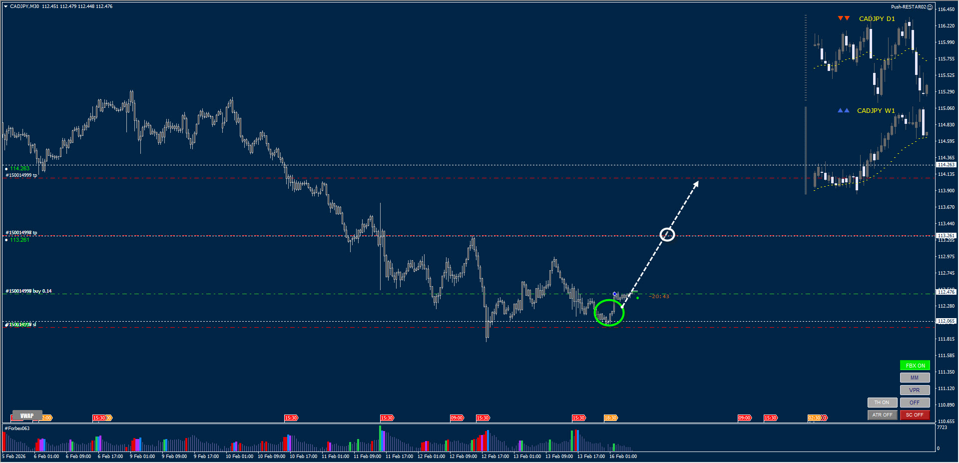 516.02.026 CADJPY M30 - BEFORE breakout: 6.8 – 7.2 / 10 If entry waited for confirmed break and retest: 7.8 / 10