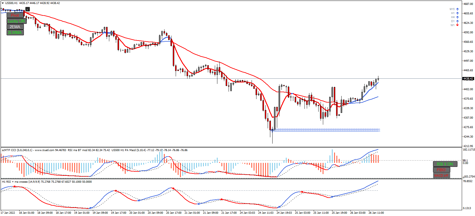However I have found that it could also work not just to get in the market when the actual signals are given but when the RSI crosses the contrary band in contrast to the moving average. For example, when price is under 27 EMA and RSI crosses upper band, it could be used as pullback of the prevalent downtrend and an opportunity to place a sell order or to add to the existing ones. Refer to second image where it shows vertical lines as entry points for long (aqua) and short (red).