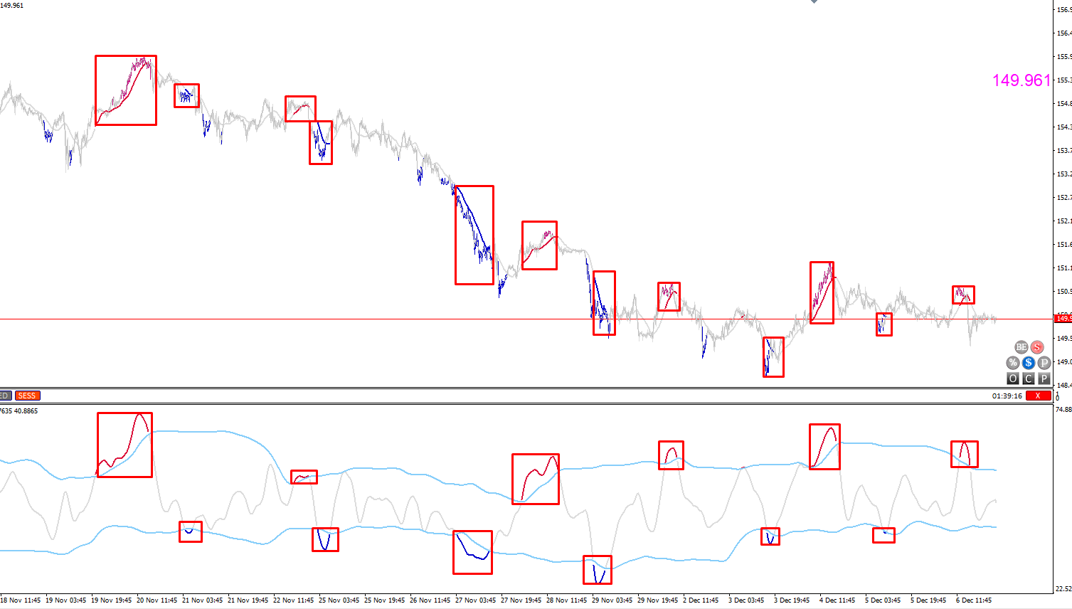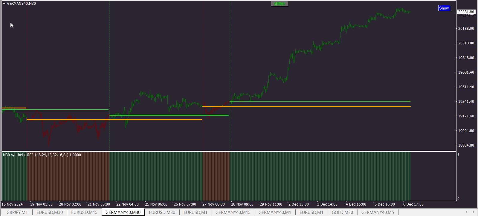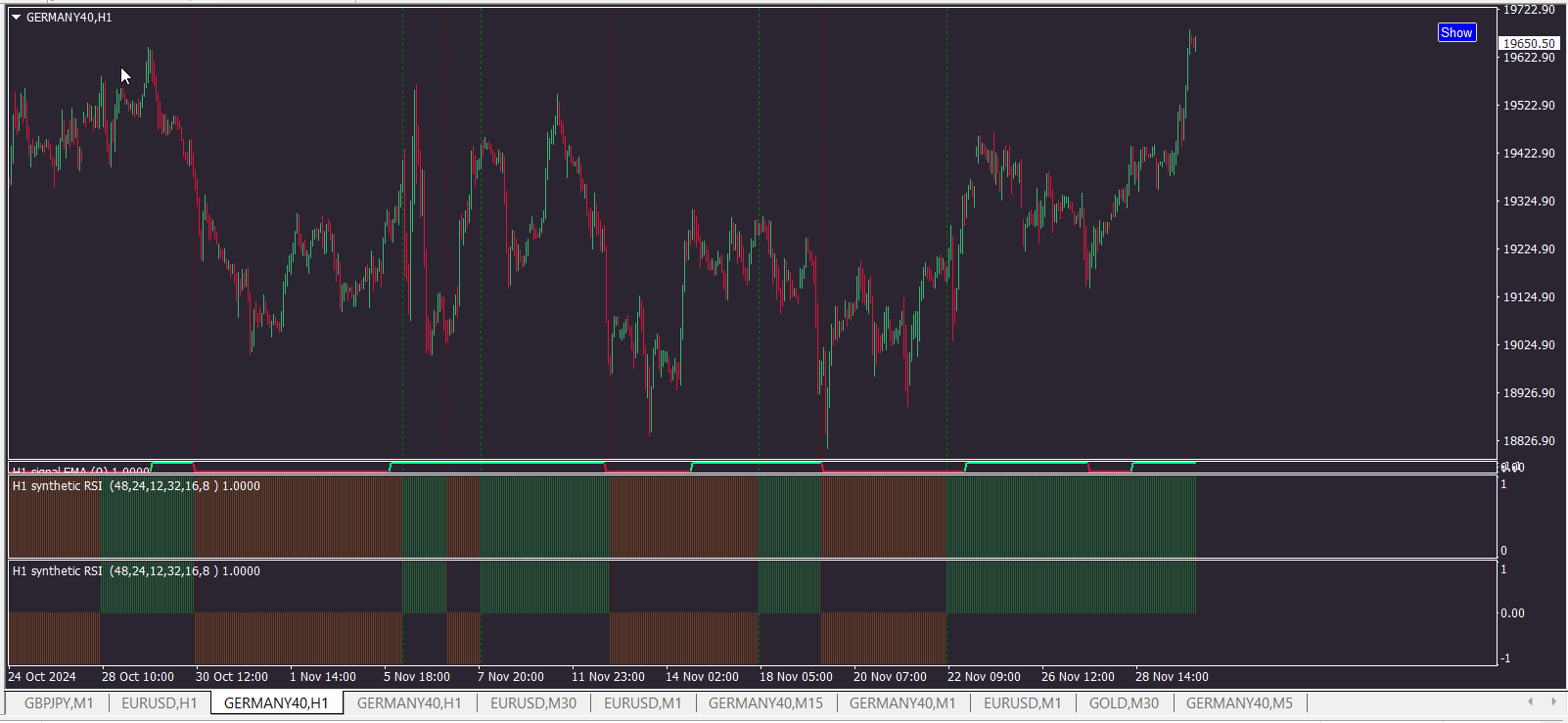 1. When the synthetic Rsi line Enter the 80 level, there will be Entry & Exit arrows. Same for when the line enter 20 level.