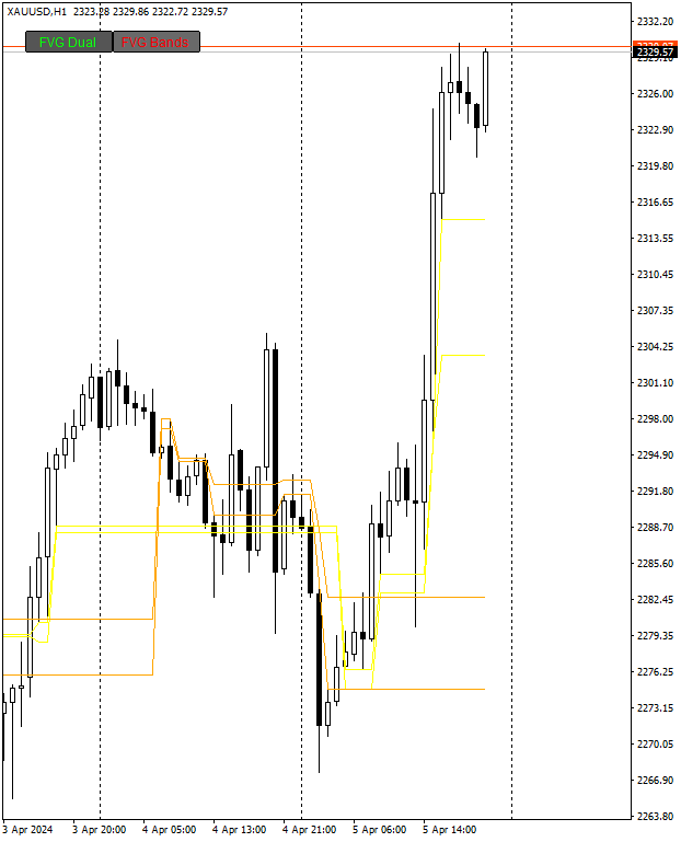 StartCalculationFromBar (default = 100) — number of bars to look back to mark up the Wide Range Bodies and Hidden Gaps.