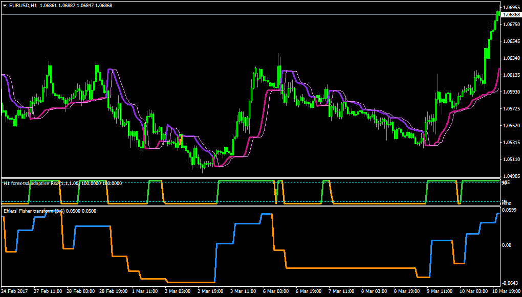I have the Ehler Fisher transform 2.4 indi, but could not reproduce the chart. What parameters are you using? (period, smoothing, price to use). Many thanks