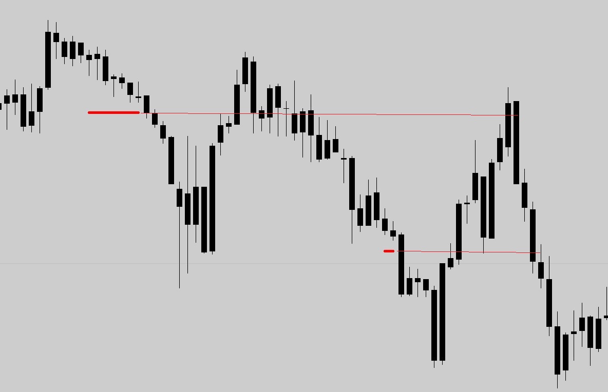 This appears to be a horizontal red line on a candlestick chart, which looks like it's functioning as a price reference level or resistance/support line. Based on the chart pattern, these horizontal lines can serve several important purposes in trading: