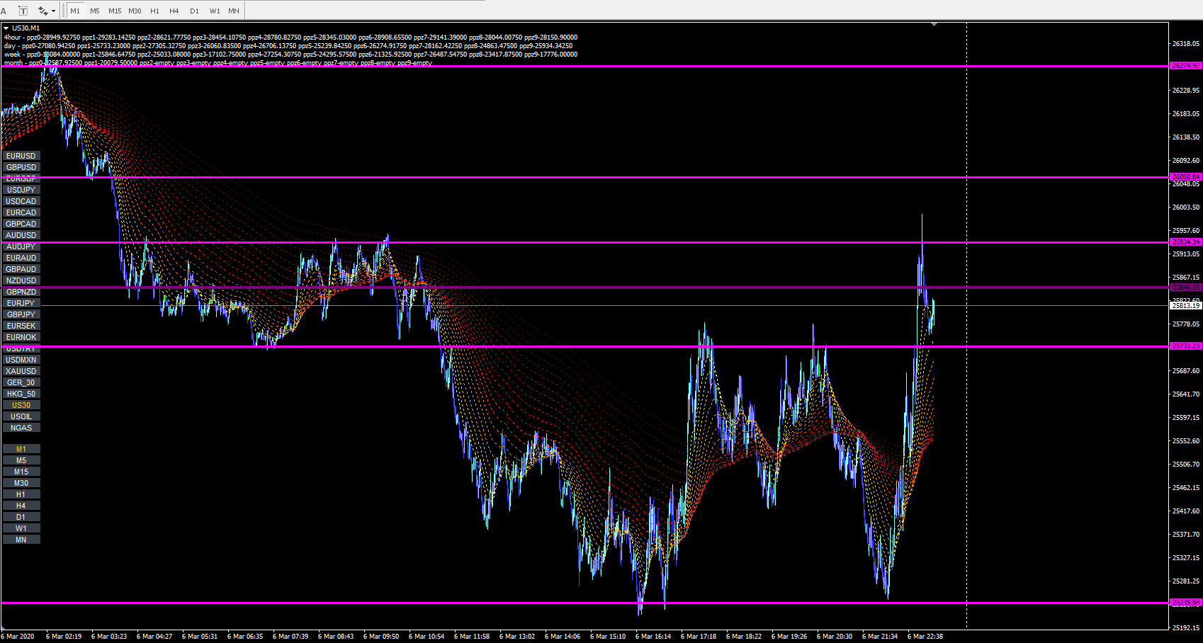 Fire and Darkness Guppy template using standard MT4 indicators