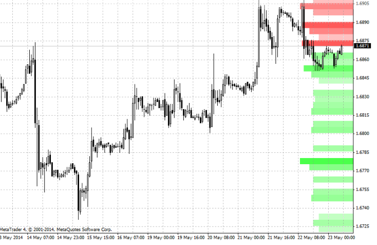 The color deep and brightness corresponds to the quantitative ratio of the Open Interest to its maximum level for this date, so now the level strength is more visual.