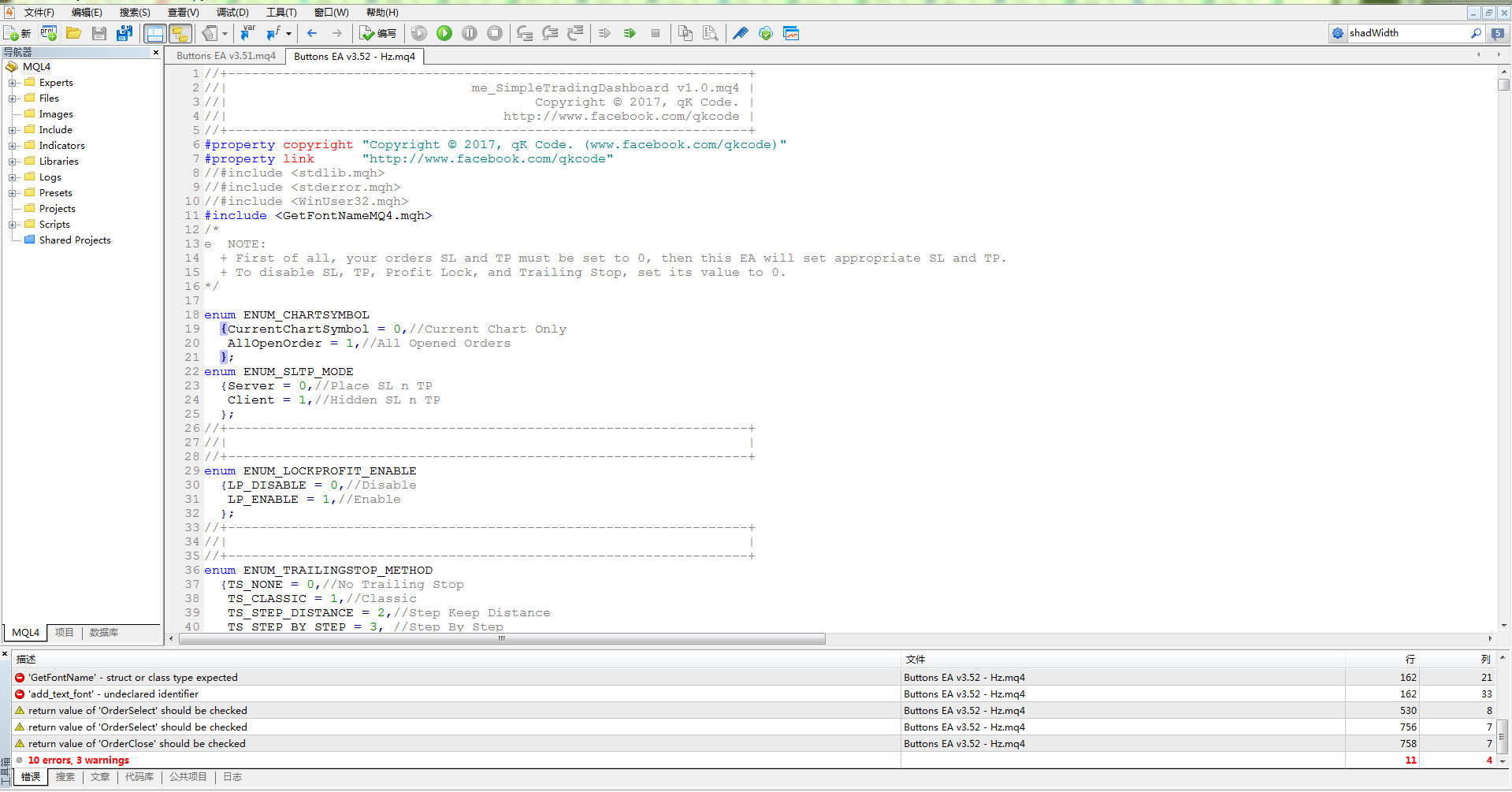 Buttons EA v3.51.mq4, Buttons EA v3.52-Hz.mq4 cannot generate ex4.