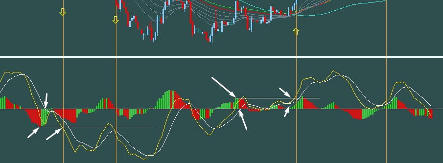 yellow line breaks down Previous histo bars lowest level