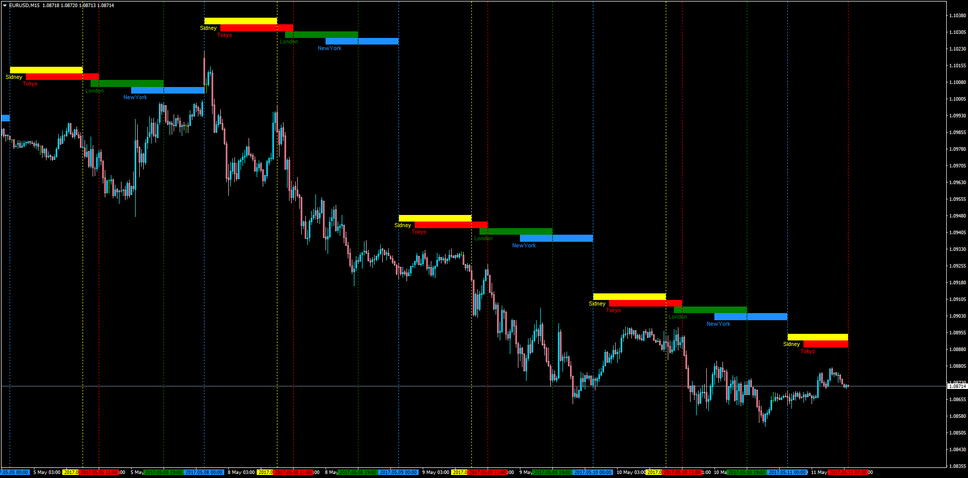 On Chart Market sessions indicator for MT4 (by apprentice)