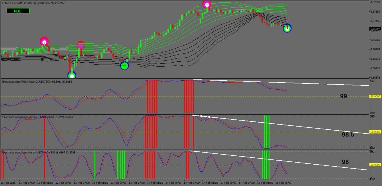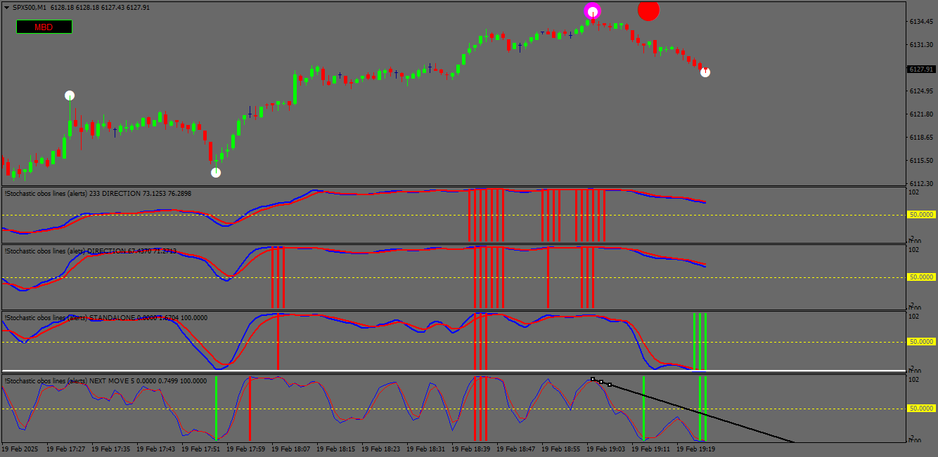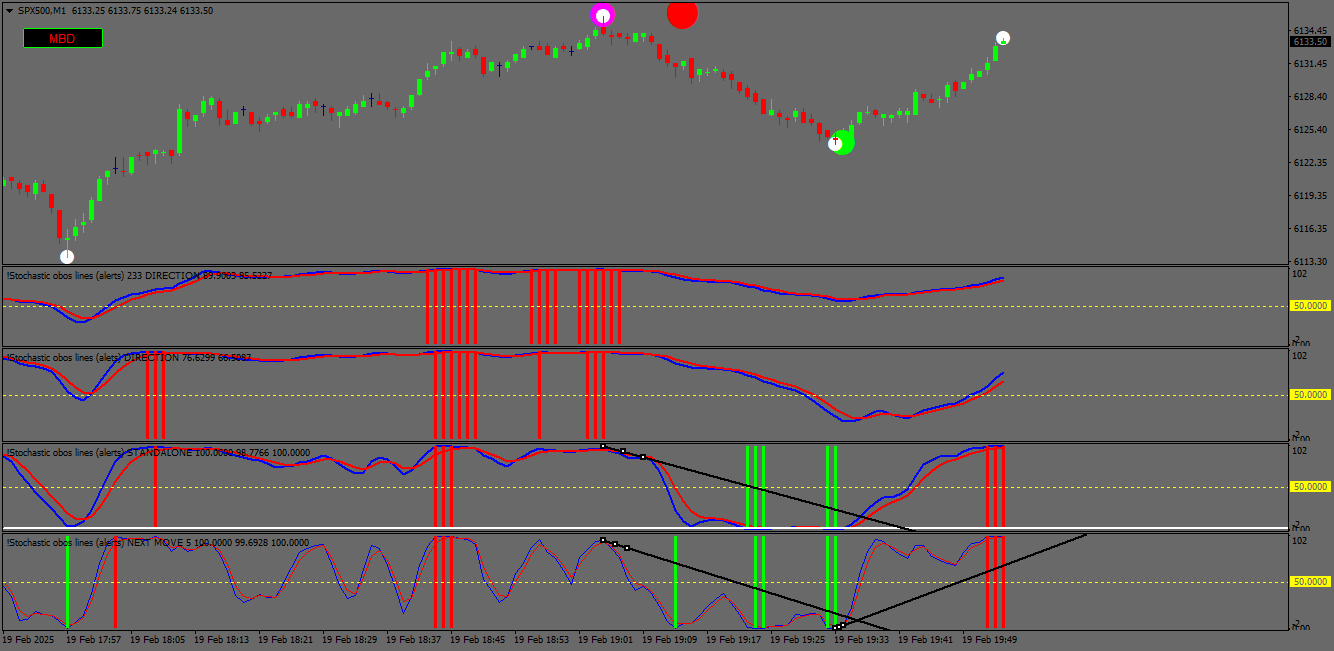 1st chart the preparation on the lower indi shows the trap (exactly the values of the stochs) and as soon as it is broken the entry.