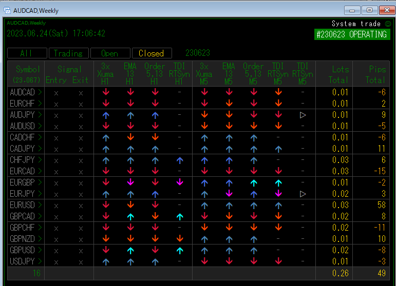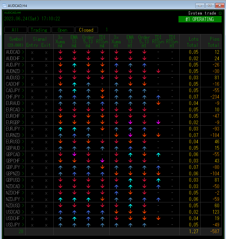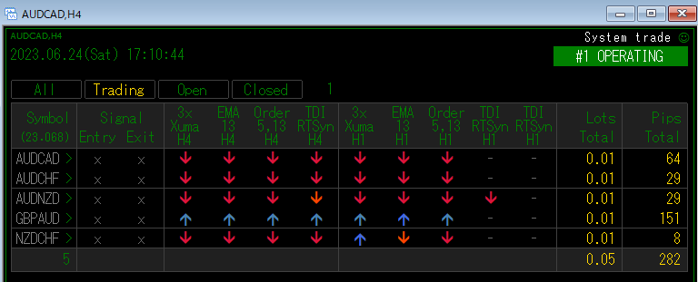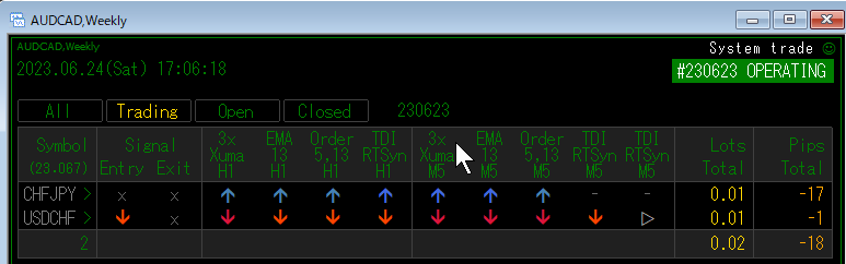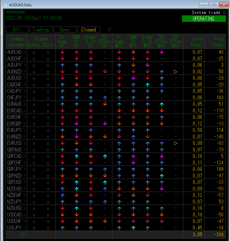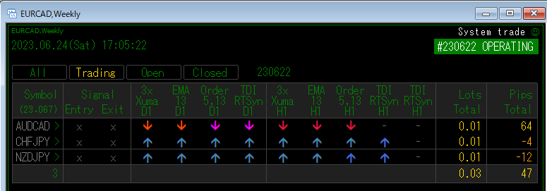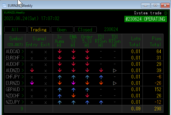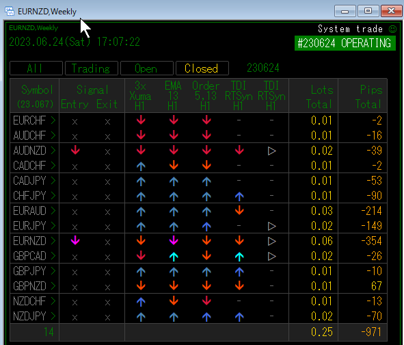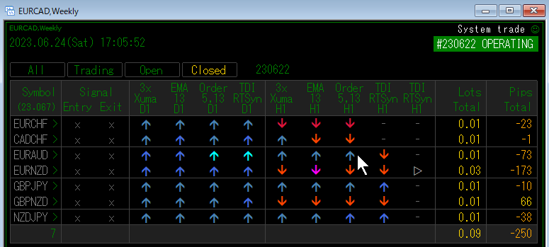 The timing of the exit is done by sensing the ups and downs of the total pips.