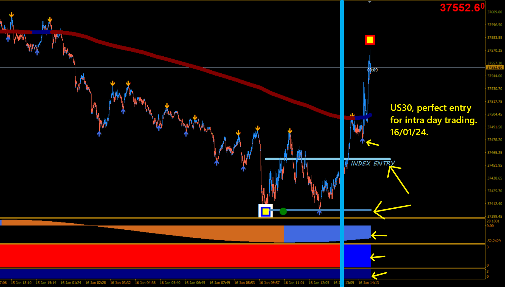 Entry/Exit signals are updated on the set time axis. Use "Entry/Exit/Alert time frame".