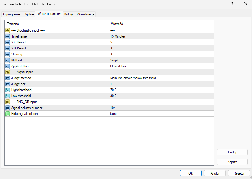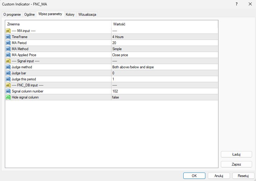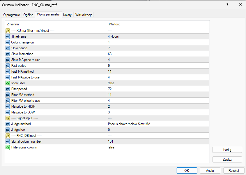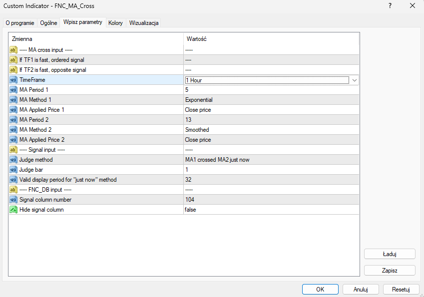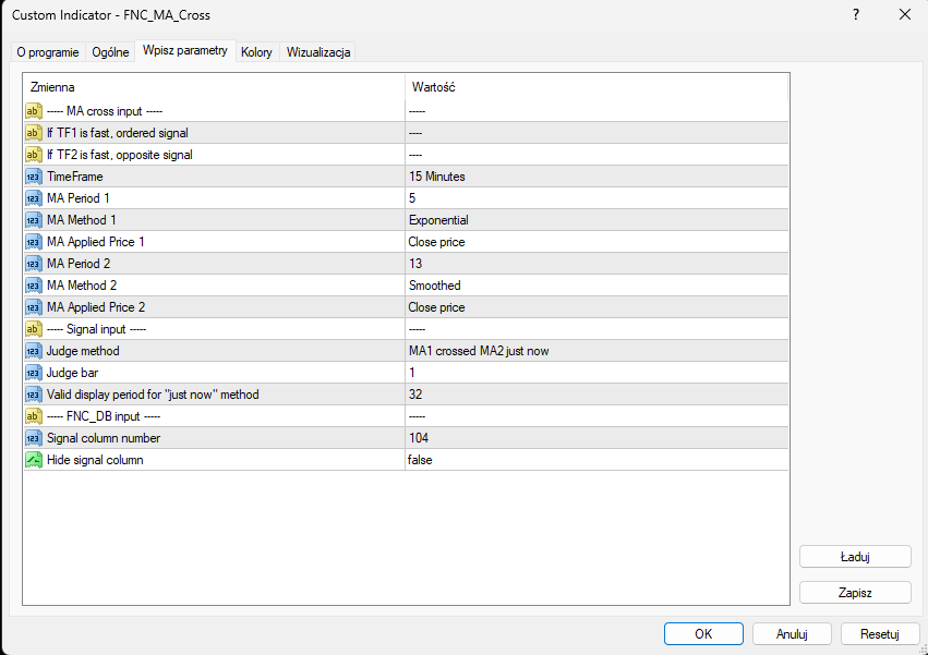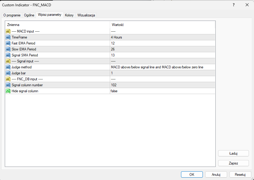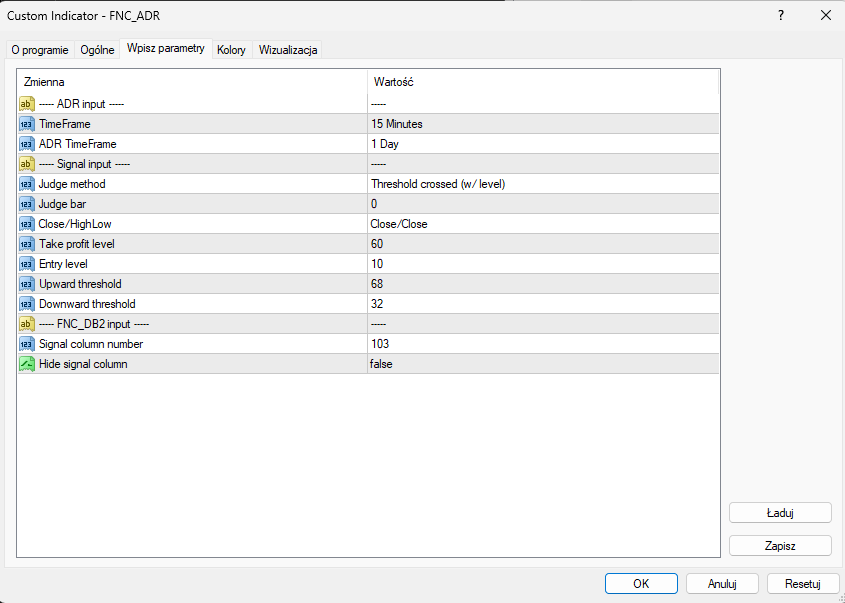 I will enter the rest of the settings in the indicator manually.