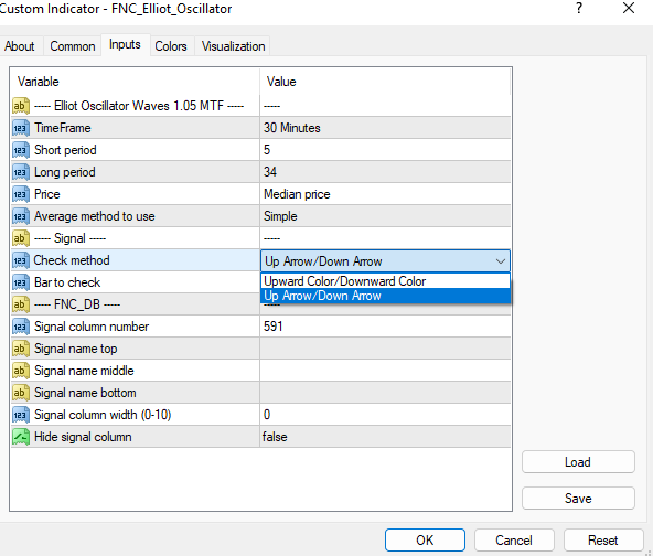 > For the FNC_Elliot_Oscillator, may I ask the check method, for upward colour/downward colour, which entry point does it mean? (image attached with 2 red arrows).