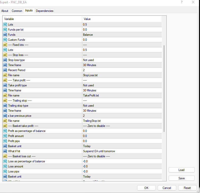 I have updated all the FNC_DB column and parameter as per attached. I also updated the FNC_DB_EA parameter too. I have not set any stop loss. I just only have few questions to ask. We don't talk about the Zee_SupRes and repainting issue first.