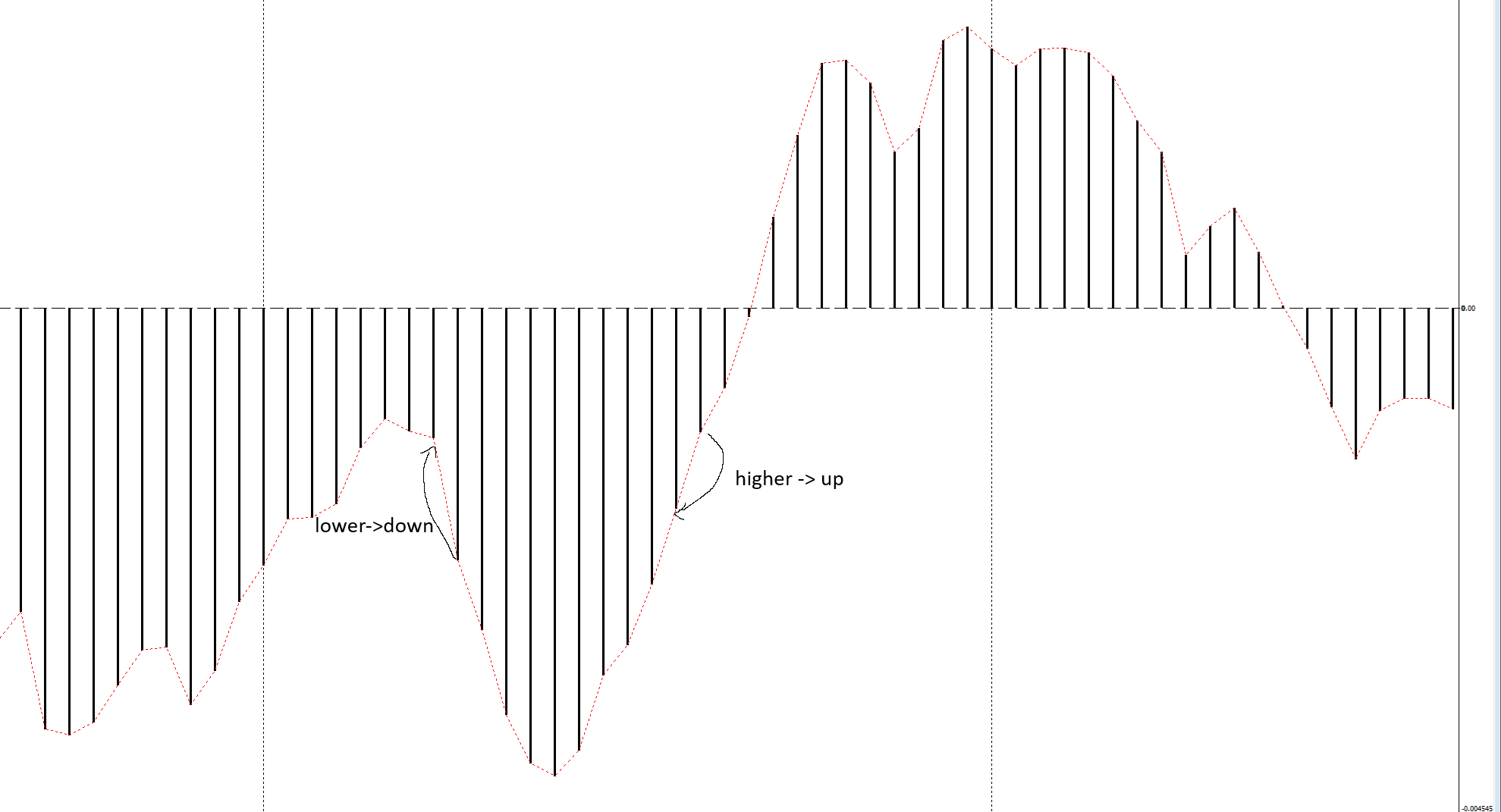 Signal “Up” when the MACD bar is higher than the previous one, and “Down” when it is lower.