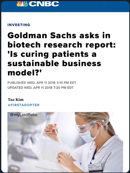 And the answer is of course not as sustainable as not curing patients