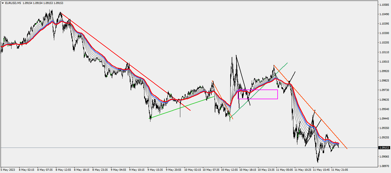 1733zoomed in 1M and 5M easy short right. Trendline will match often with the MA's