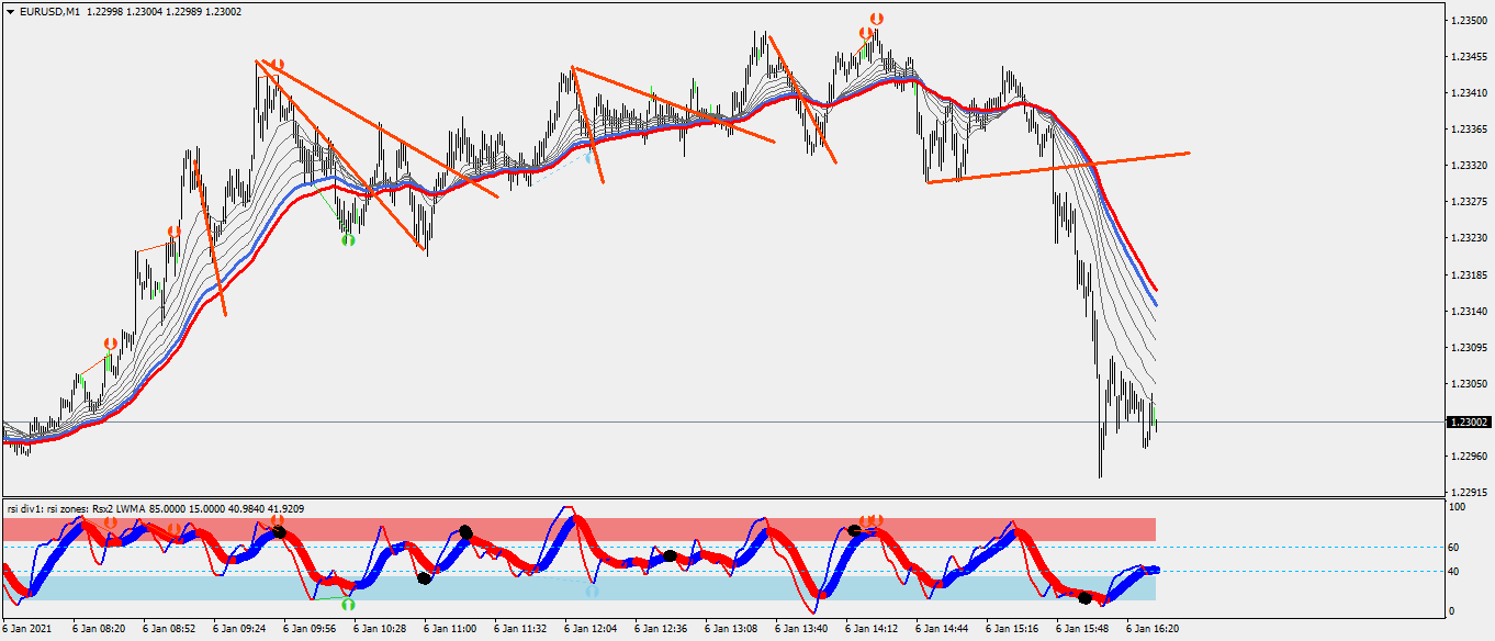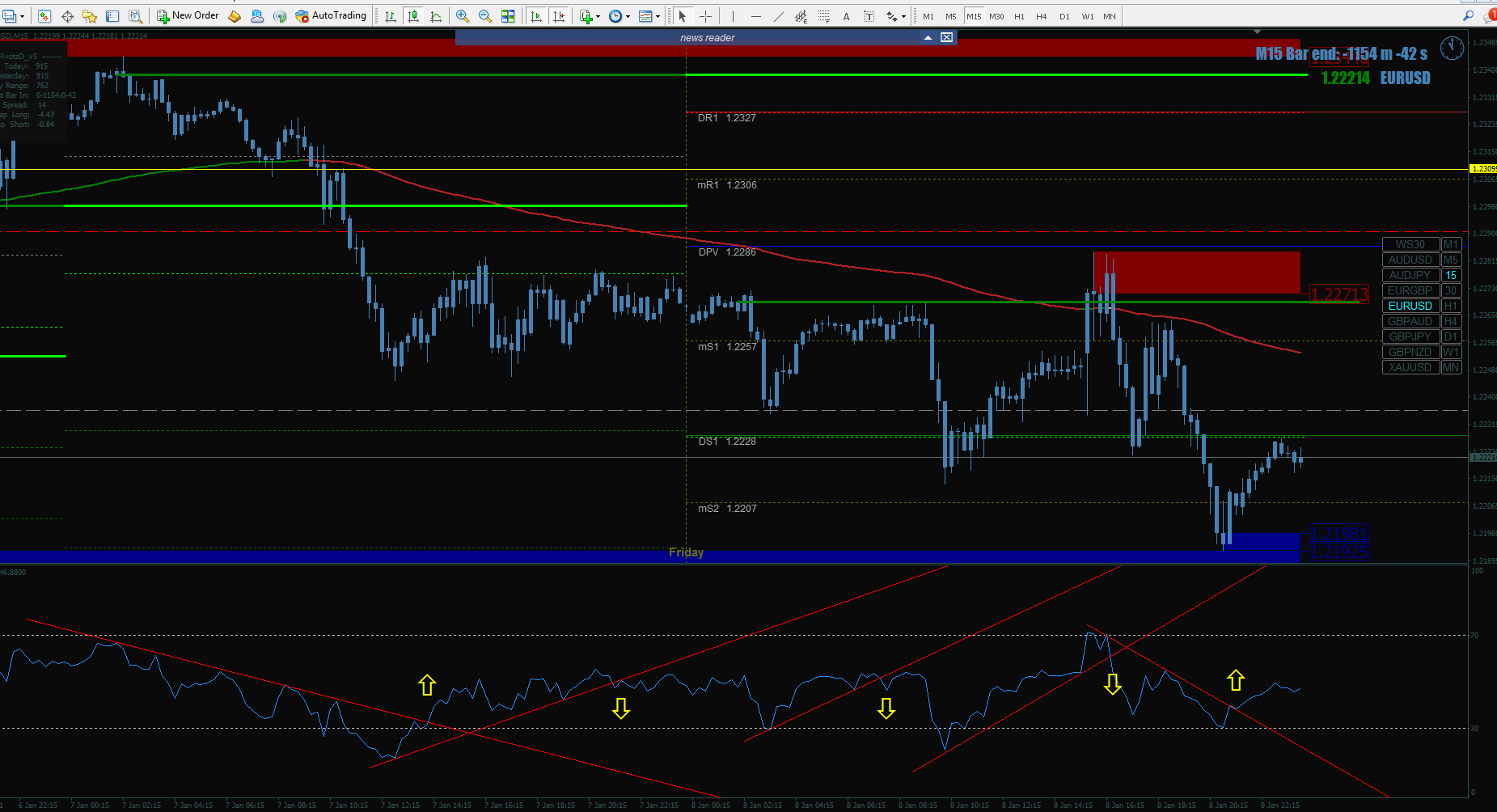The only difference I would do regarding the way I trade, is to replace that RSI for the standard RSI and draw the trend lines on it.