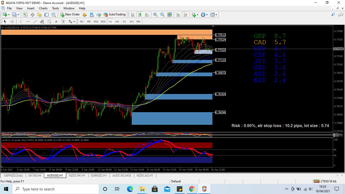 claytonbj88 wrote: Mon Apr 19, 2021 5:01 am there we go, i managed to get the picture uploaded, so as you can see price is in-between 0.77322 (SUPPLY) and 0.77122 ( DEMAND) ive never really used supply and demand before so im trying to learn and get a better under standing on what you should do in this situation, because as you can see price is consolidating. so because price is above the MA are we looking for price to break above the supply toward the upside, and once the stochastics starts to move outside the overbought zones we then take that trade as a buy?