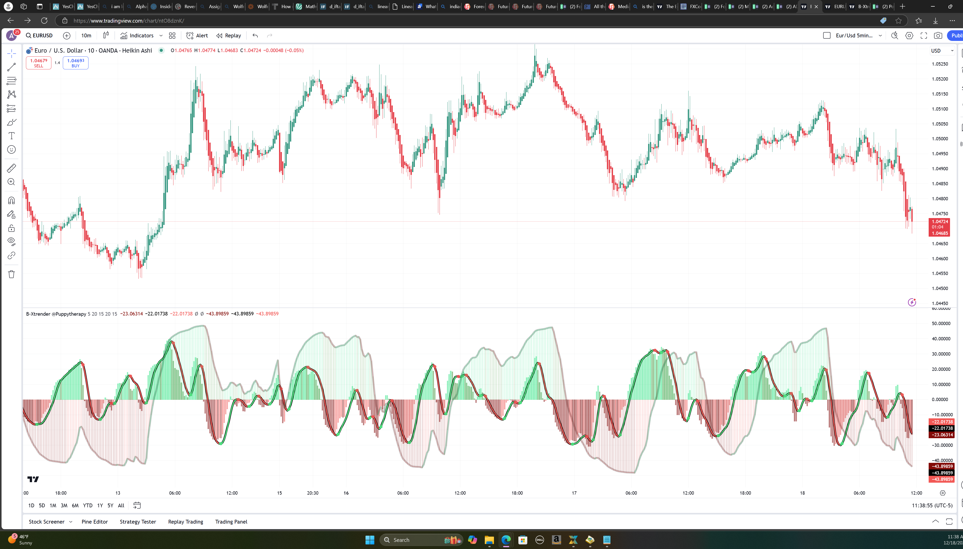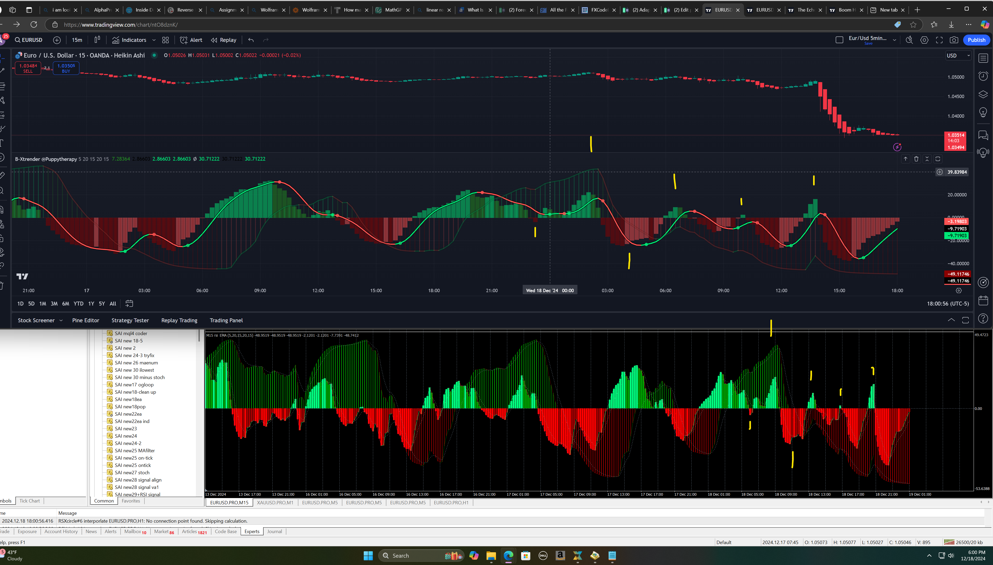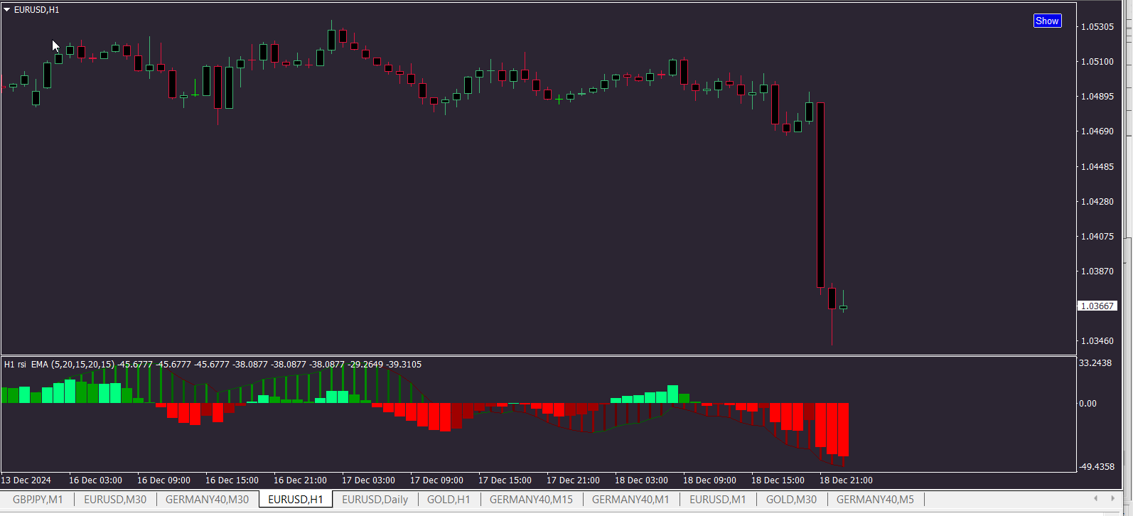 cazy smart money move on euro usd like 100-150 pips a little while ago at a glance. a new recent low hasnt been that low in a while. i have a strategy for euro i am working on i am down to the last round of filtering was hoping something like this might contribute ill have to have a look if any other features are added. this looks great awesome looking work. if i had a wish list it would be for the foreground line with the dots and maybe dots on the background line when the bicolor line changes. that would make it about set. thanks for the time to do it and any consideration.