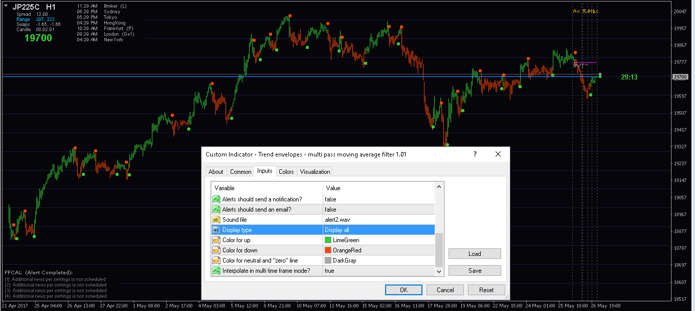 The version TCF (trend continuation factor) with usual prices and mtf