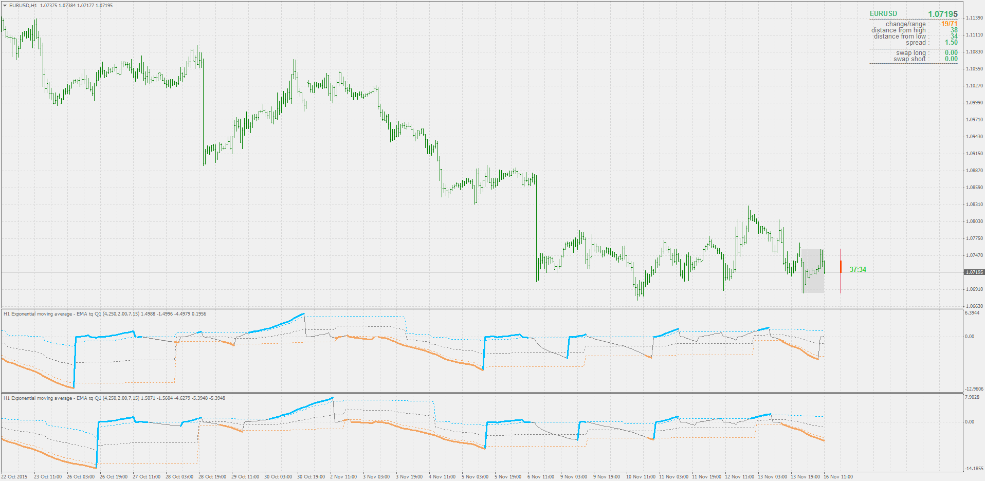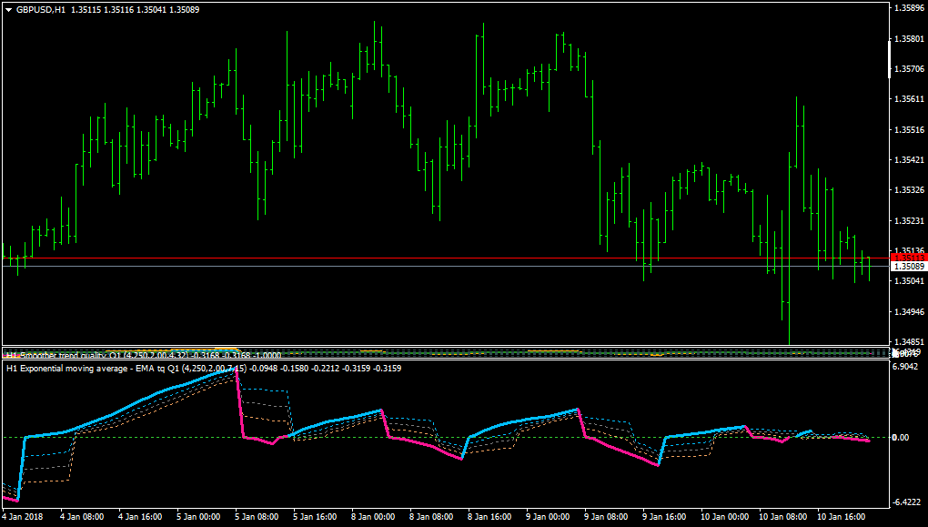 The great thing about this tool by Mladen is that it brings back memories of an old trading strategy for me. I actually first started using this type of trend trading strategy many years ago as a newbie in the Forex game. A friend introduced me a technique called the "34 EMA Wave" by Raghee Horner. And that began my journey and research into Raghee Horner's books and trading techniques.
