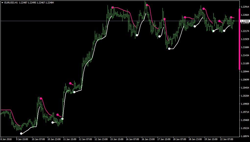 If anyone is looking to master trend trading I recommend downloading this indicator, applying it to your charts, and looking up Raghee Horner and her 34 EMA wave strategy. She's got a lot of very helpful info for beginners on her YouTube page as well.