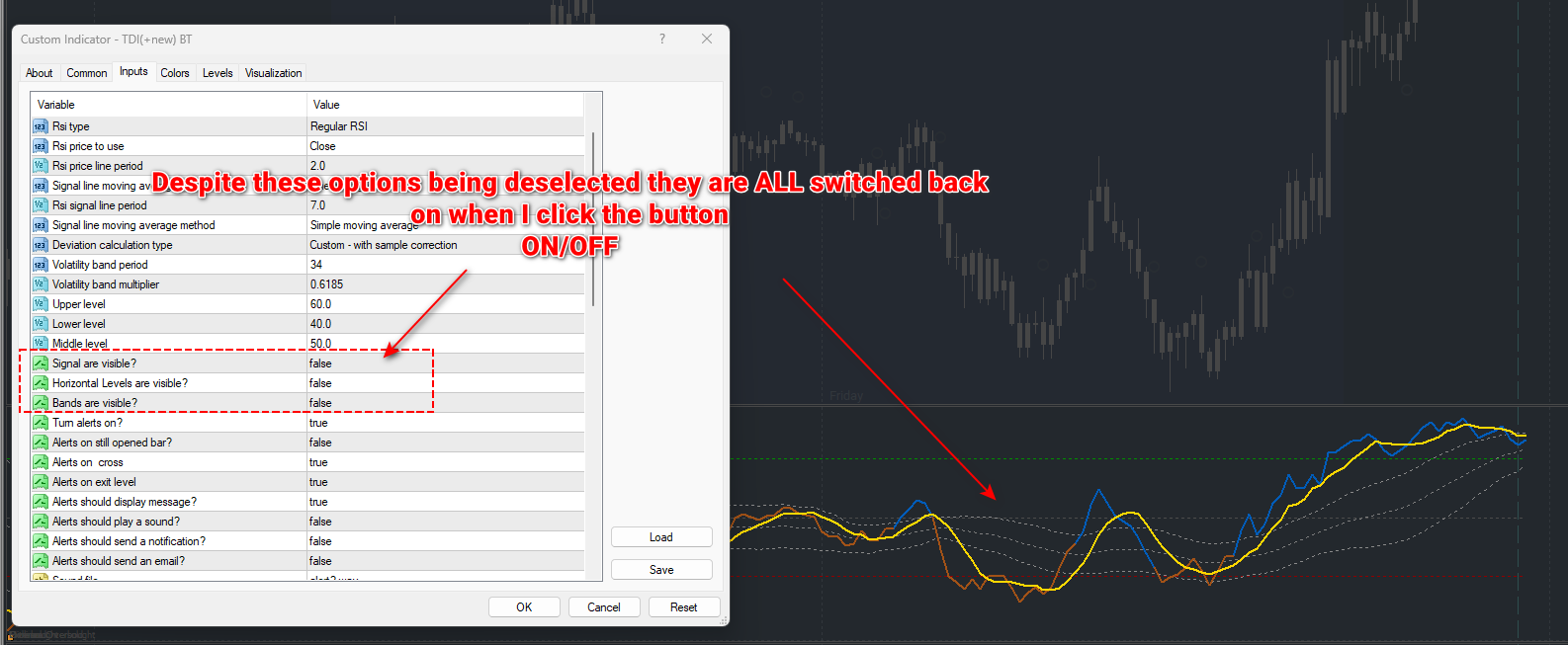 TDI Arrows, Alerts and Color Change options include:
