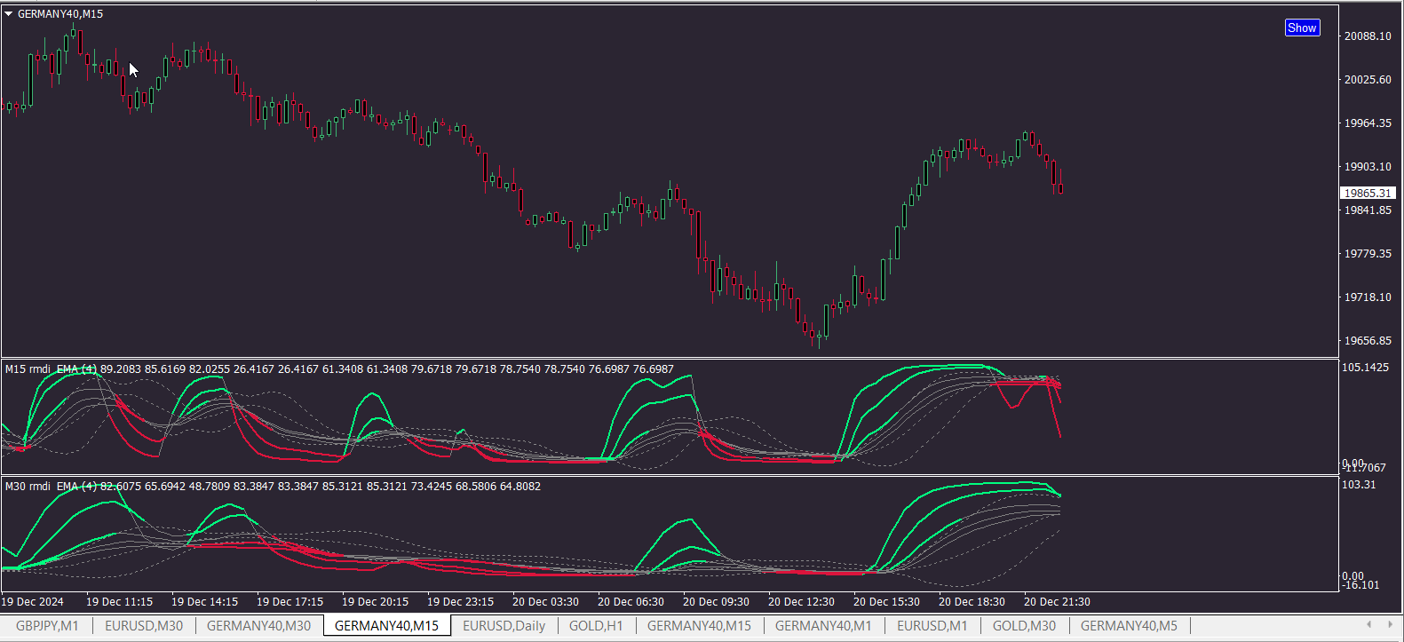 TDI with RMI (Relative Momentum Index) and Multi-timeframe mode