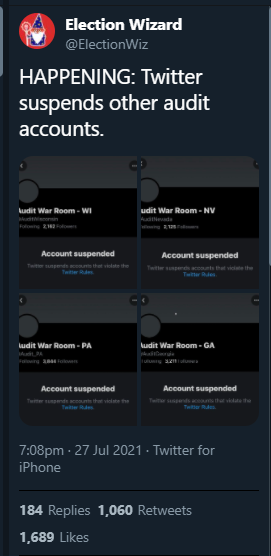 Heard large discrepancies were found in AZ and GA太虚一毫 wrote: Tue Jul 20, 2021 1:34 am Please provide us with the latest developments in the US election audit.