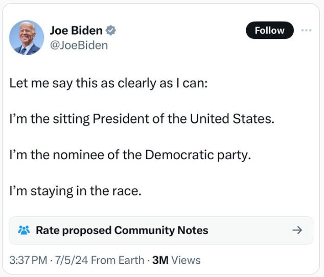 44Joe's not going anywhere, probably because he knows a democrat is going to win, doesn't matter who it is.