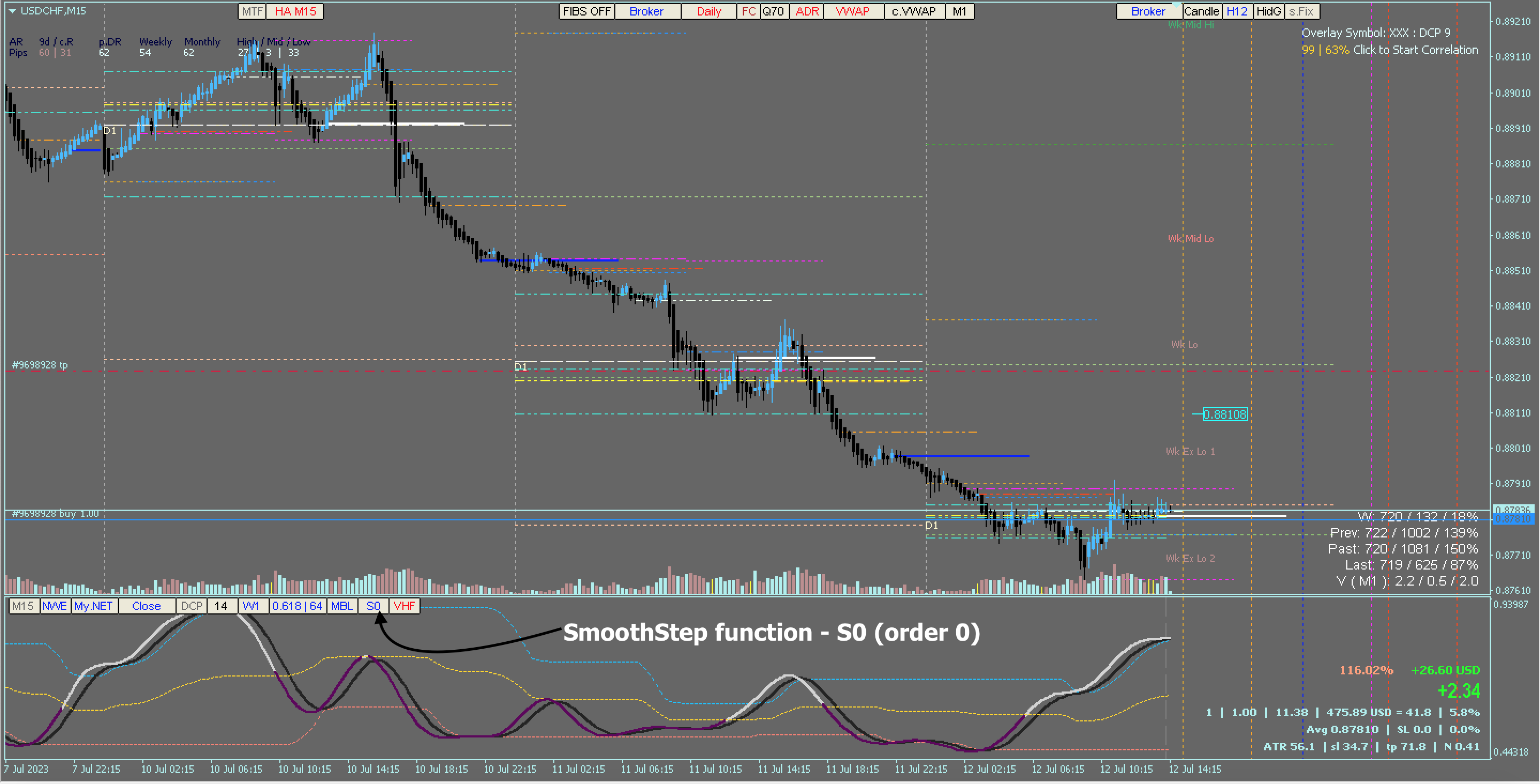 There are many cases in which we need normalized values (computer graphics, machine learning, technical analysis). There are several ways to accomplish this, including SmoothStep. It belongs to the family of sigmoidal (clamping in this case, since this indicator, as it is, is not used for interpolation) functions, and it produces a subset of what is the built-in stochastic, except that in its original range of 0 to 1 and that it filters out some values that stochastic produces. This makes SmoothStep more suitable for some applications, such as clamping, where you don't want to have values above or below the desired range. Additionally, SmoothStep is computationally efficient, making it a good choice for applications where speed is a priority.
