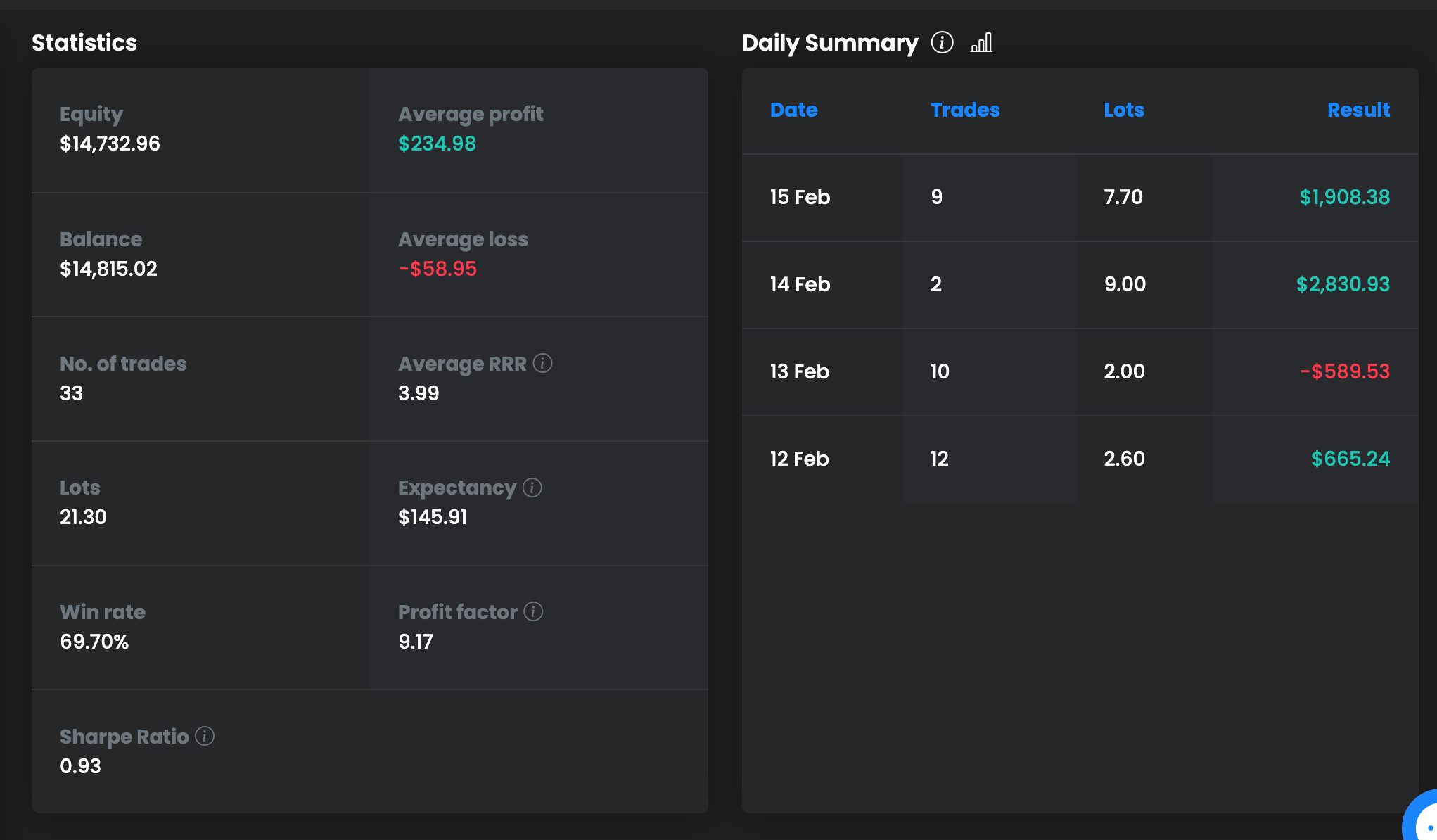Thanks for your answer - no need for statistics (I believe in your profitablility because of the trades you take).