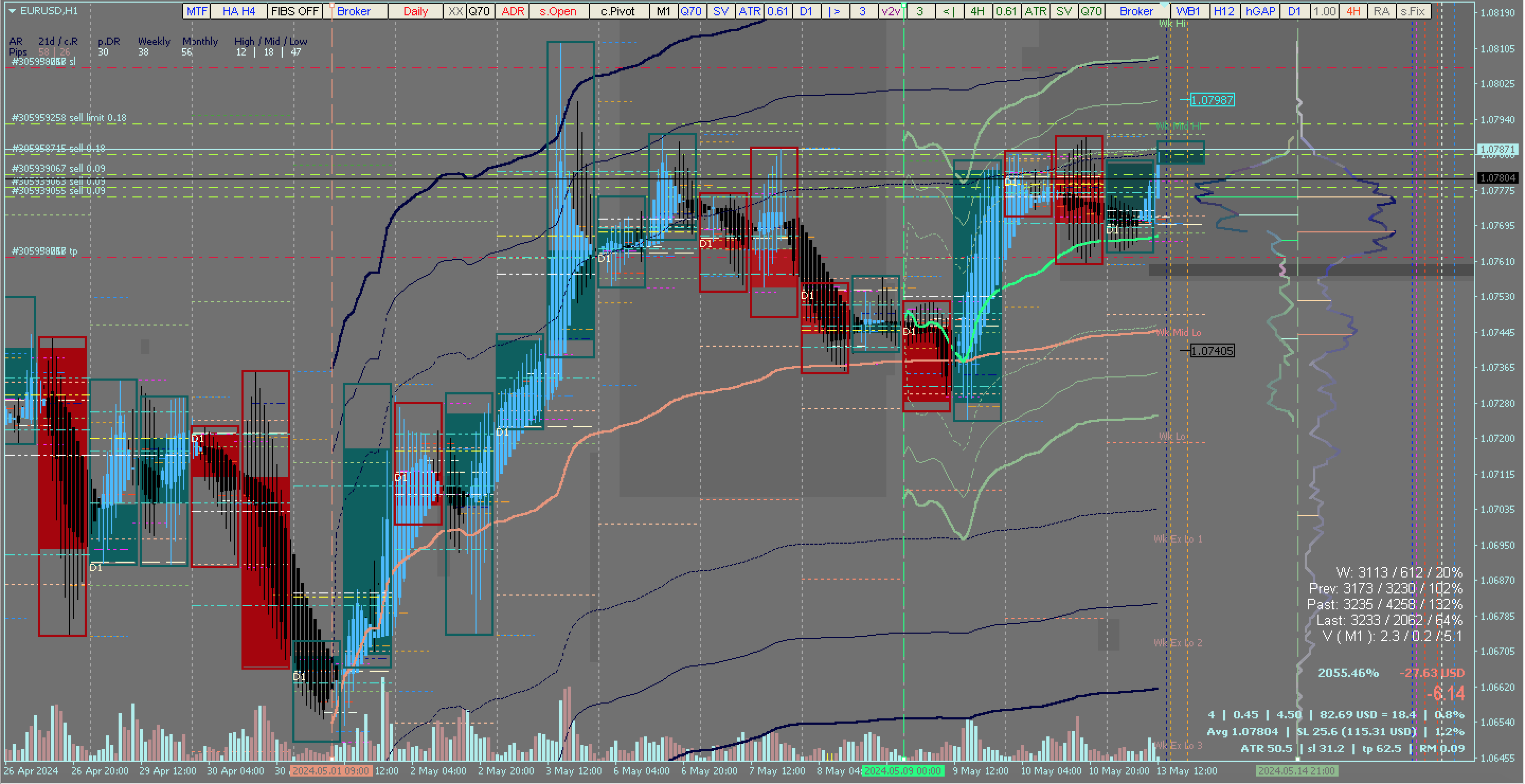 If you're finding it difficult to switch between system options or modify your chart screen and setup, you may need to turn OFF the dynamic MyNET or Hidden Gap finder (or set lower start bar parameter value). This will enable faster and easier switching. For instance, when you want to move or set up SL & TP, or when you want to close existing positions. After you're done, you can turn it back ON as required.
