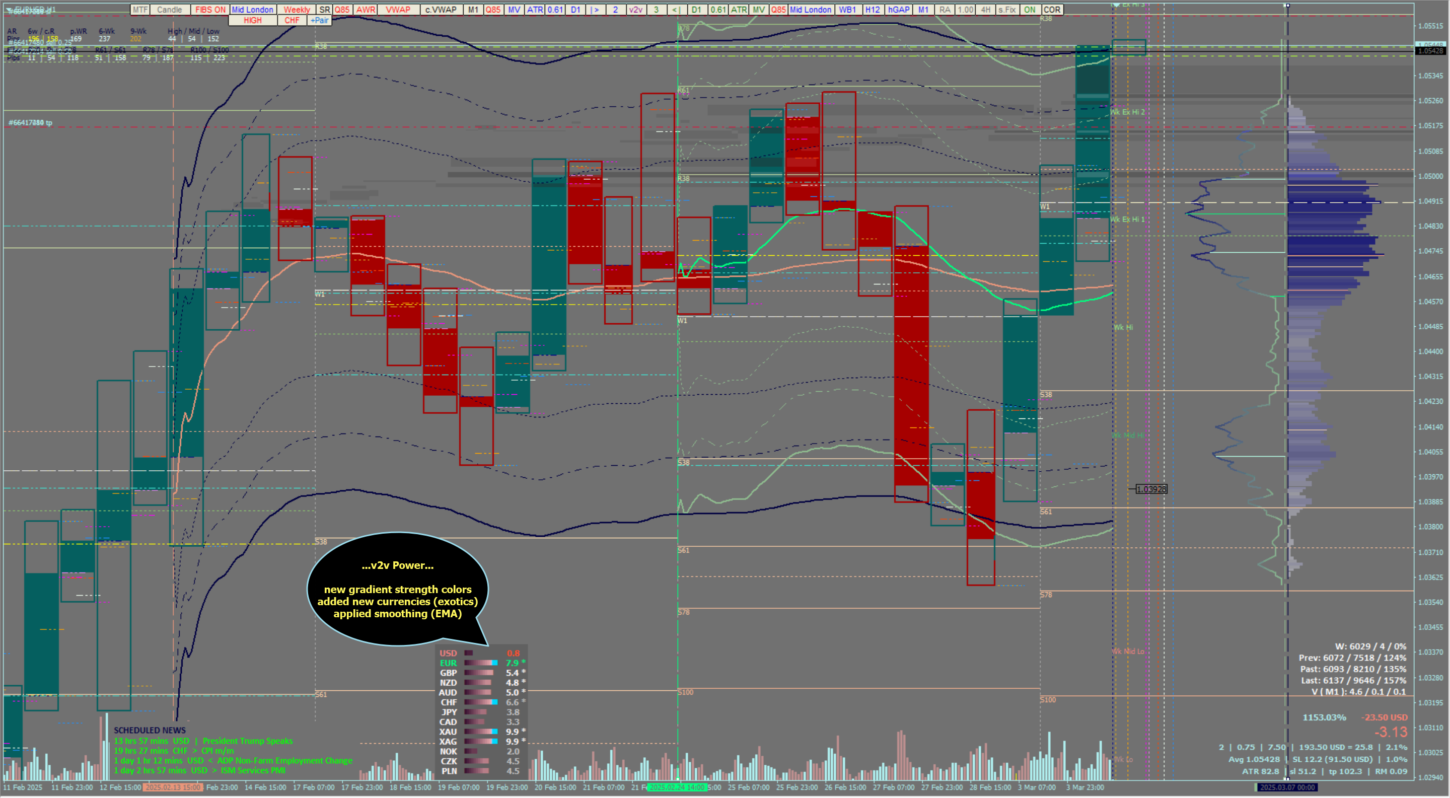 To better understand this system's foundations, I highly recommend starting with the first page of its development thread. There, you will find that various tools and indicators have been meticulously customized to align with the structure of the v2v dynamic trading system, including additional functionalities and enhancements.
