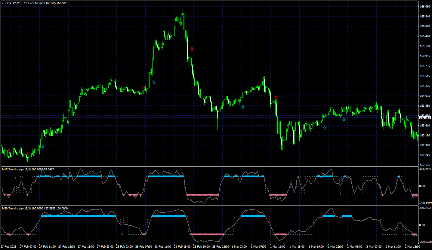 So in order to avoid a premature buy or sell order that gets us stopped out and leads to a loss, Trend Scalp has to be paired with 1 or more indicators that measure trend strength and/or direction. With the right settings for the right instrument, you can stay in a trend for longer and avoid an early exit due to a larger-than-expected pullback.