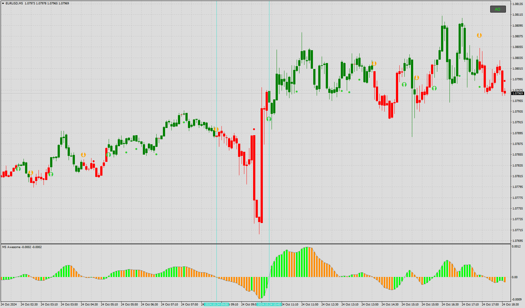 if the AWO candles below zero level main chart bars shall be in red and vise versa!