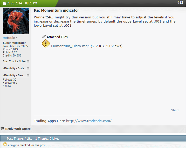 Upon searching I was surprised that we didn't have a standard Momentum Histogram uploaded yet so I'd better fill in that void by posting this one from the archives which was made by our dearest Mrtools back in the TSD days.