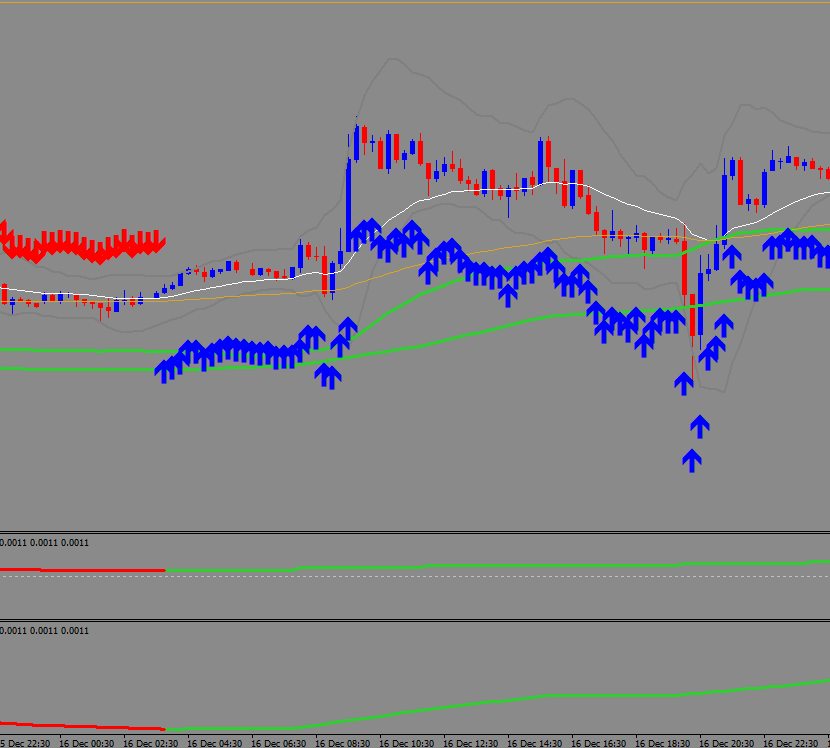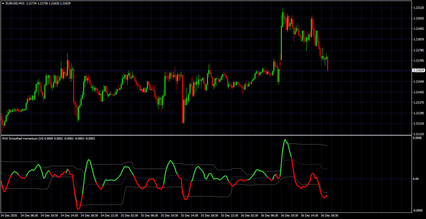 I created a simple test case that shows arrows pointing up when the momentum is green and down when red. What I noticed was that on the 4hr chart everything looks good: